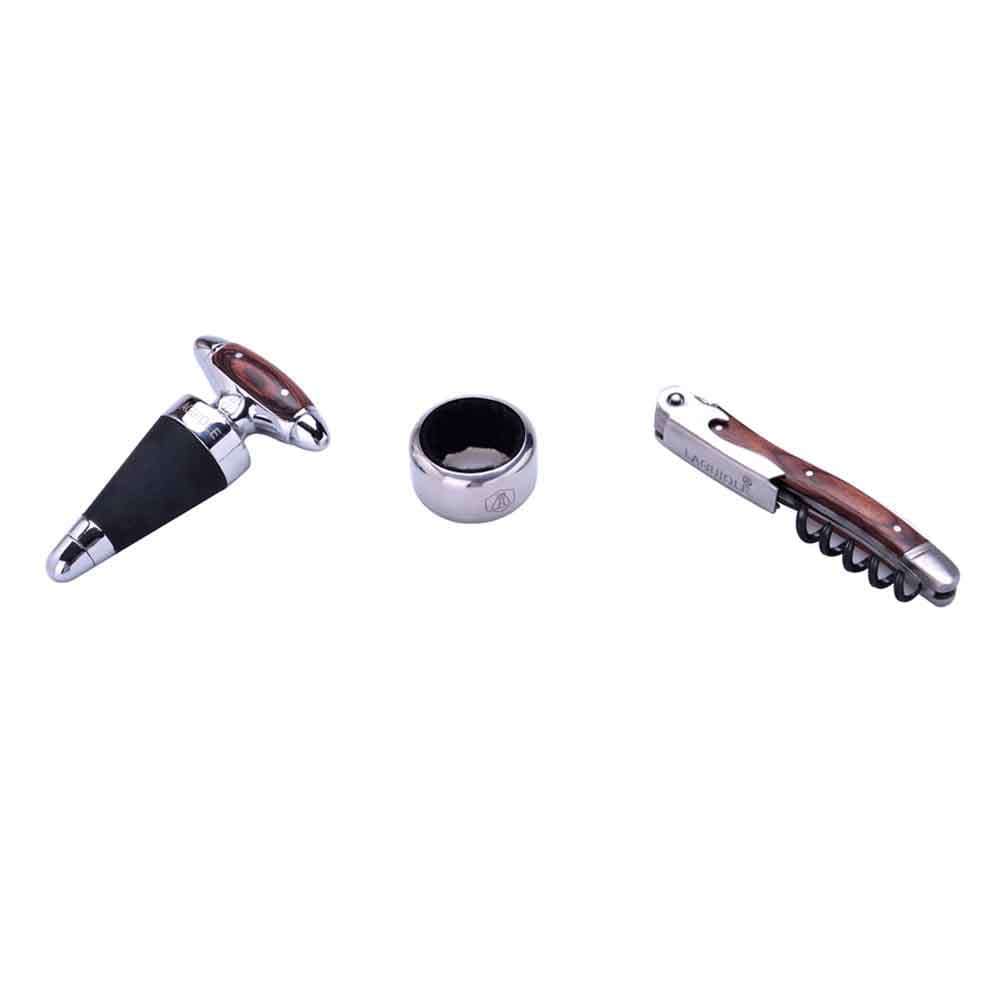 Perfeccione su experiencia vinícola con el juego de regalo de vino Laguiole, que incluye un elegante sacacorchos, un anillo de goteo y un tapón. Ideal para realzar sus raciones de vino o como regalo premium para cualquier amante del vino. Más información.