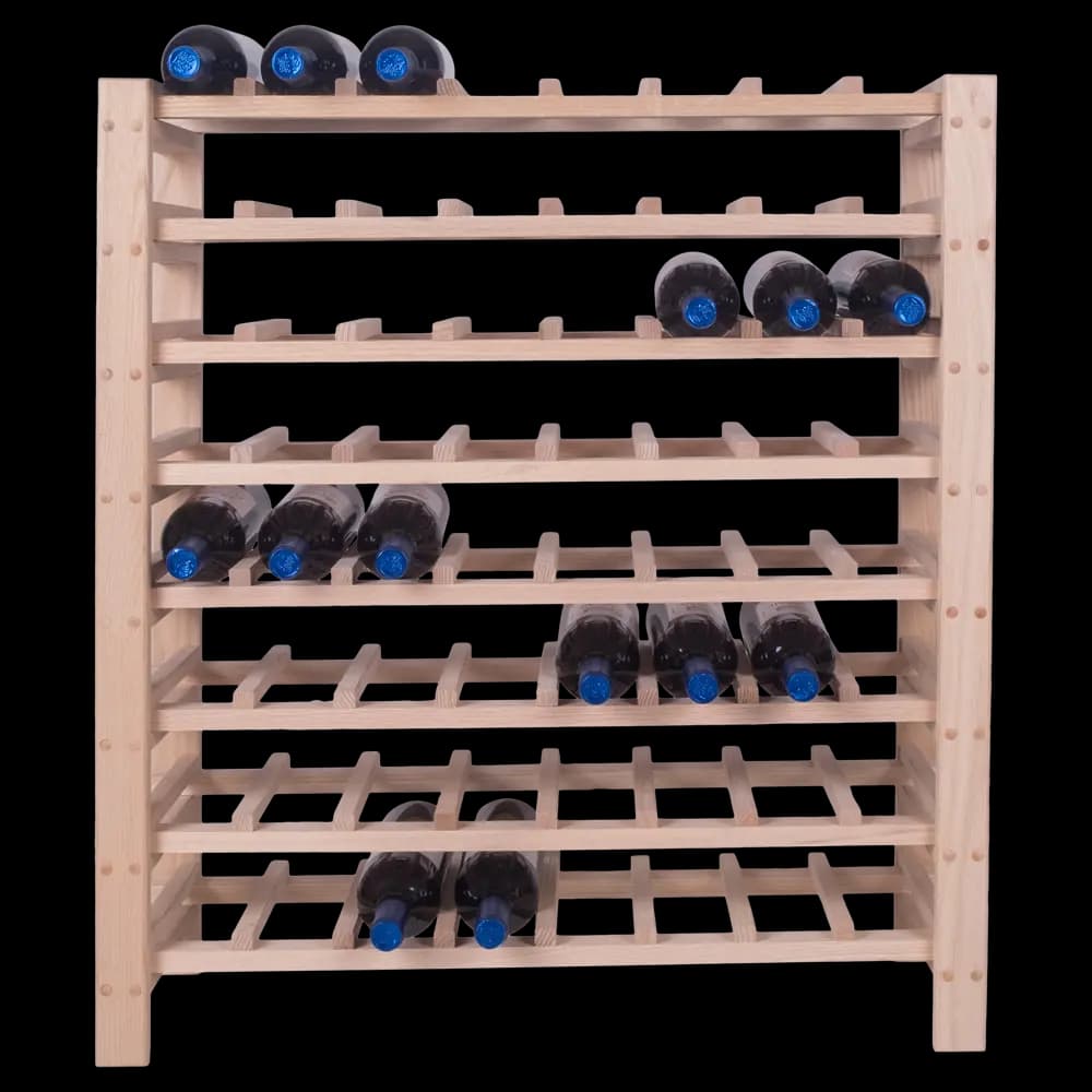 Este botellero es principalmente para botellas de Burdeos y Borgoña, pero puede haber algún compartimento donde haya espacio para champán. El estante superior puede contener todo tipo de botellas.