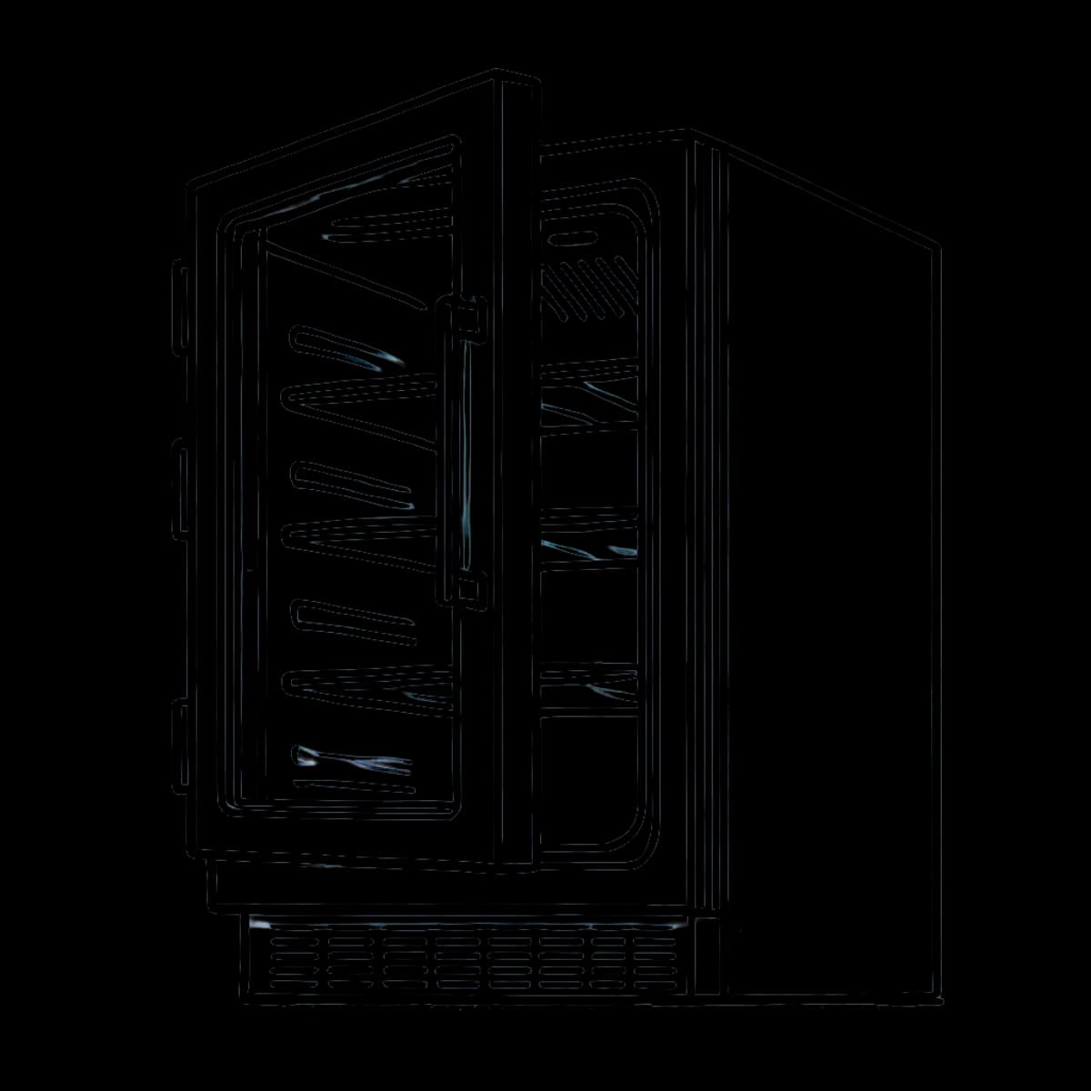 Este nuevo modelo integrable es una estupenda vinoteca de dos zonas (ambas de 5-20°C), con una puerta de vidrio negro con eficiencia energética LOW-E de bajo consumo, tirador negro y espacio para 101 botellas tipo burdeos. Dentro de la vinoteca tus botellas descansarán en 13 estantes extraíbles de madera, iluminados desde los lados por una hermosa luz LED que puede configurarse en blanco, azul o naranja.